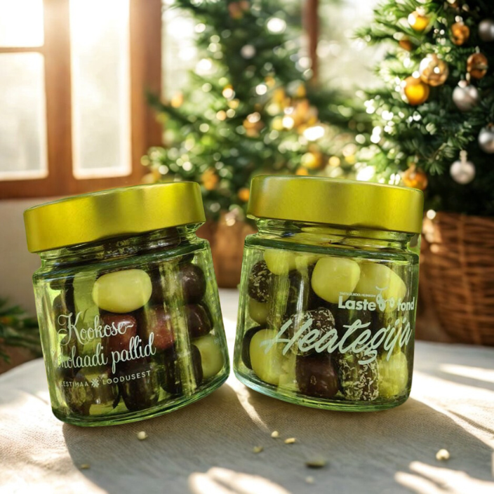 Coconut balls covered in various chocolates.